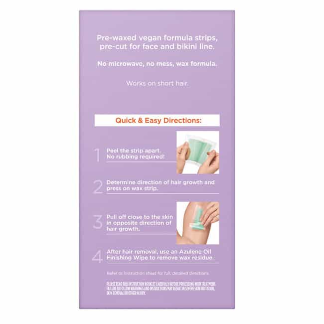 Sally Hansen’s Insta Wax Strips™for Face & Bikini, ideal for first time self-waxers. Strips are ready to use instantly. Just peel apart and apply, no rubbing or warming needed.