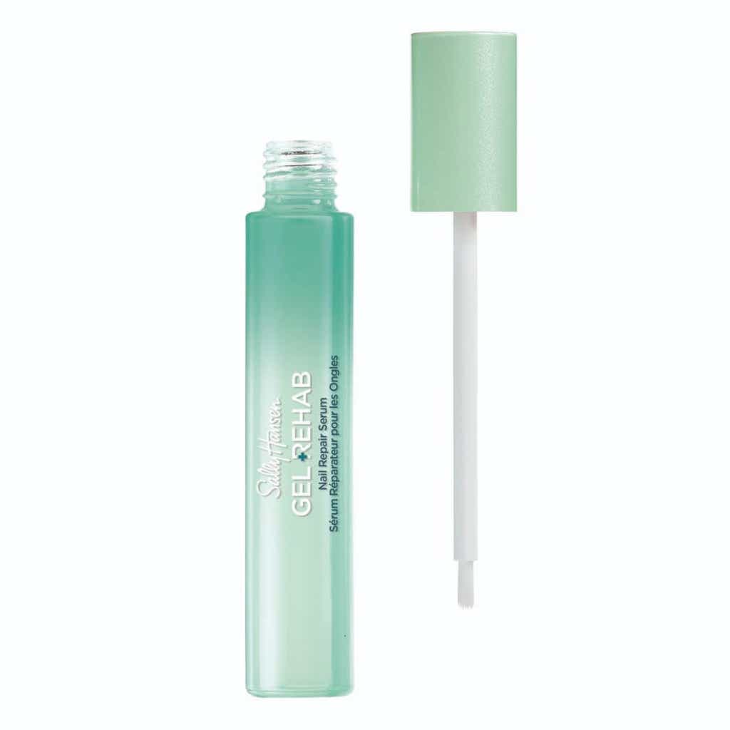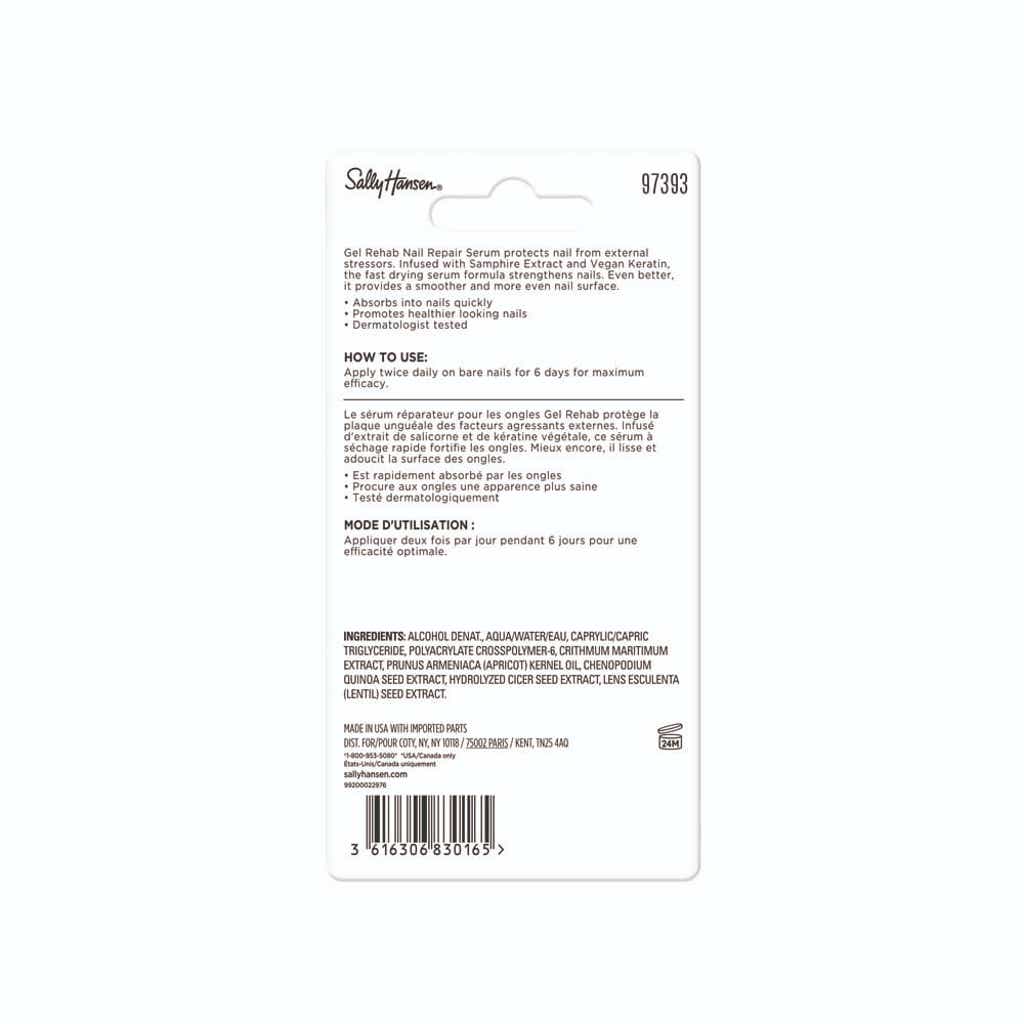 NEW Sally Hansen Gel Rehab Nail Repair Serum helps with Gel Damage Repair and Breakage Protection. Infused with Samphire Extract and Vegan Keratin, this fast-drying formula strengthens nails, shields them from external stressors, and helps create a smoother, more even surface.