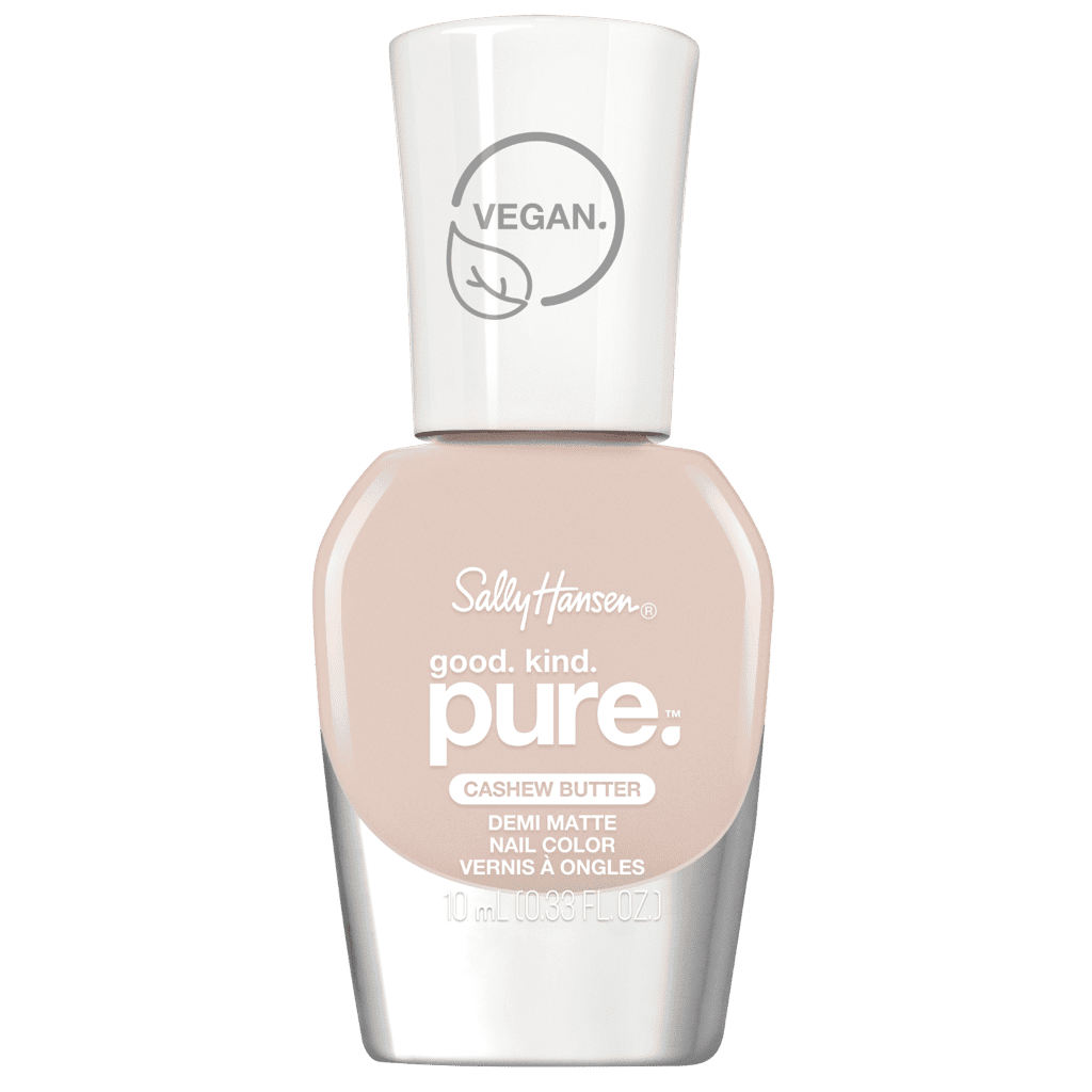 Sally Hansen’s first plant-based, 16-free*, 100% vegan nail polish offers beautiful color and shine with no compromise. Good.Kind.Pure provides rich caring color, smooth application, even coverage, and lasts as long as traditional polish.