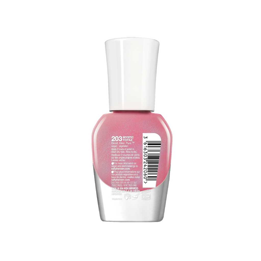 Sally Hansen’s first plant-based, 16-free*, 100% vegan nail polish offers beautiful color and shine with no compromise. Good.Kind.Pure provides rich caring color, smooth application, even coverage, and lasts as long as traditional polish.
