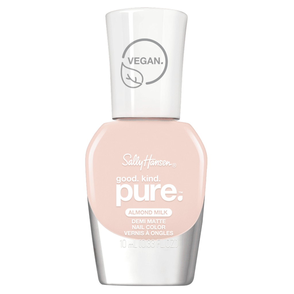 Sally Hansen’s first plant-based, 16-free*, 100% vegan nail polish offers beautiful color and shine with no compromise. Good.Kind.Pure provides rich caring color, smooth application, even coverage, and lasts as long as traditional polish.
